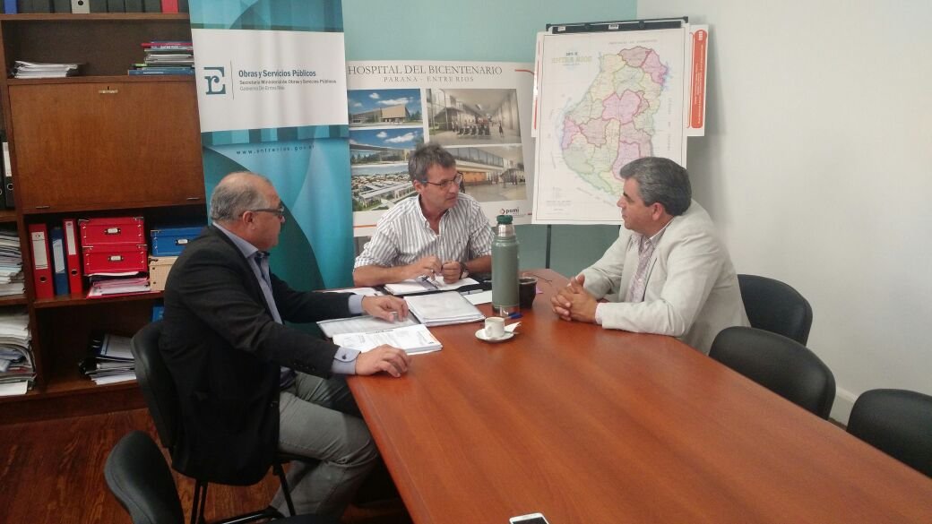 con el Ministro de Gobierno y Justicia Mauro Urribarri para tratar tema cámaras de seguridad para Herrera, luego se reunieron con el Secretario de Planeamiento, Infraestructura y Servicios Marcelo Richard a quien se le había presentado anteriormente proyectos gestionando cloacas para la Zona Sur y el reemplazo de cubierta de tejas por chapas para la Esc. Nº 21 “Alberto Larroque”.