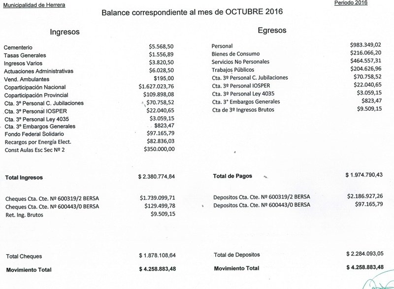 Balance Octubre 2016