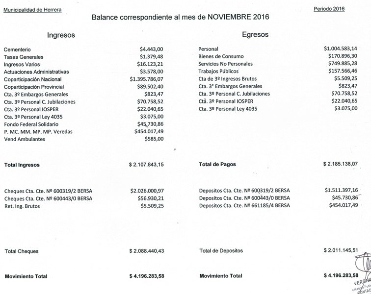 Balance Noviembre 2016