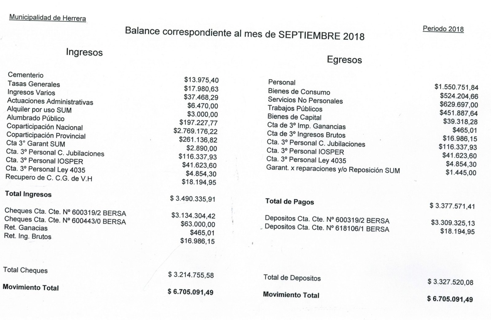 Balance Septiembre 2018