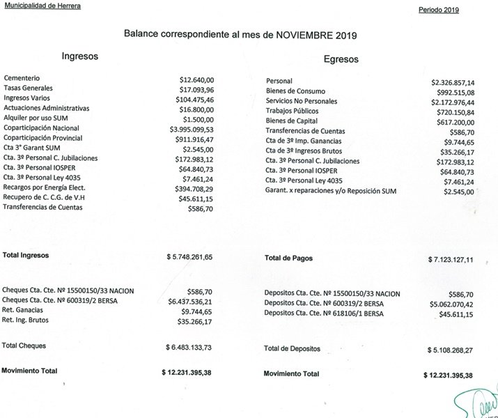 Balance Noviembre 2019