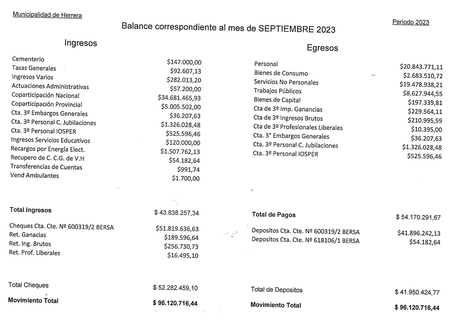 Balance Septiembre 2023